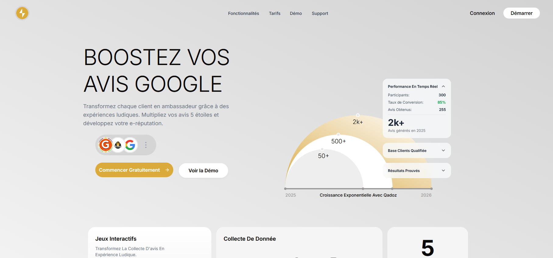 Plateforme SaaS de gamification d'avis Google avec système de récompenses et dashboard analytics.